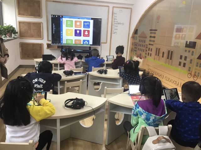 ▲ 孩子们认真体验想象力线上课程,看,他们学习内容都不一样,系统会根据孩子的基础智能化生成匹配课程,让每个孩子都有自己的学习跑道!