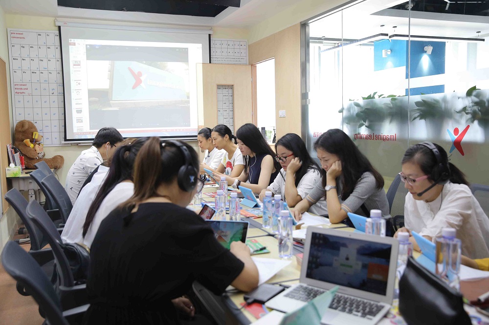 师训第二天,想象力英语一线教师就产品后续服务流程和细节做了细致的讲解。想象力英语从初期建立家长体验群、邀请有意向参加体验的用户,做好产品体验服务到试用期结束家长会的流程都给出了详细介绍。在和家长的沟通中,如何有效地传达想象力英语的优势,切实展现想象力英语系统的国际性和先进性,想象力英语品牌经理Haisea为老师们做了全面的解答。