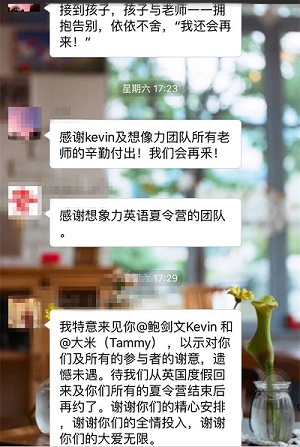 美国想象力英语中国区总裁,此次夏令营的领队,充满爱心、情怀与理想的教育实践家鲍剑文校长在桂林夏令营即将结束之际在群里发了一段感悟,家长们纷纷回复致谢,表达了对想象力团队的感恩,也希望明年还能办这样的夏令营活动!鲍校长是这样说的: